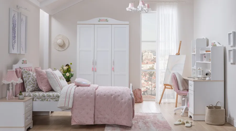 The Corso Youth Room blends the calming essence of Scandinavian design with a unique textured surface, evoking warmth and natural charm. Its fiber-like details create a tactile experience that brings depth and character to your space.